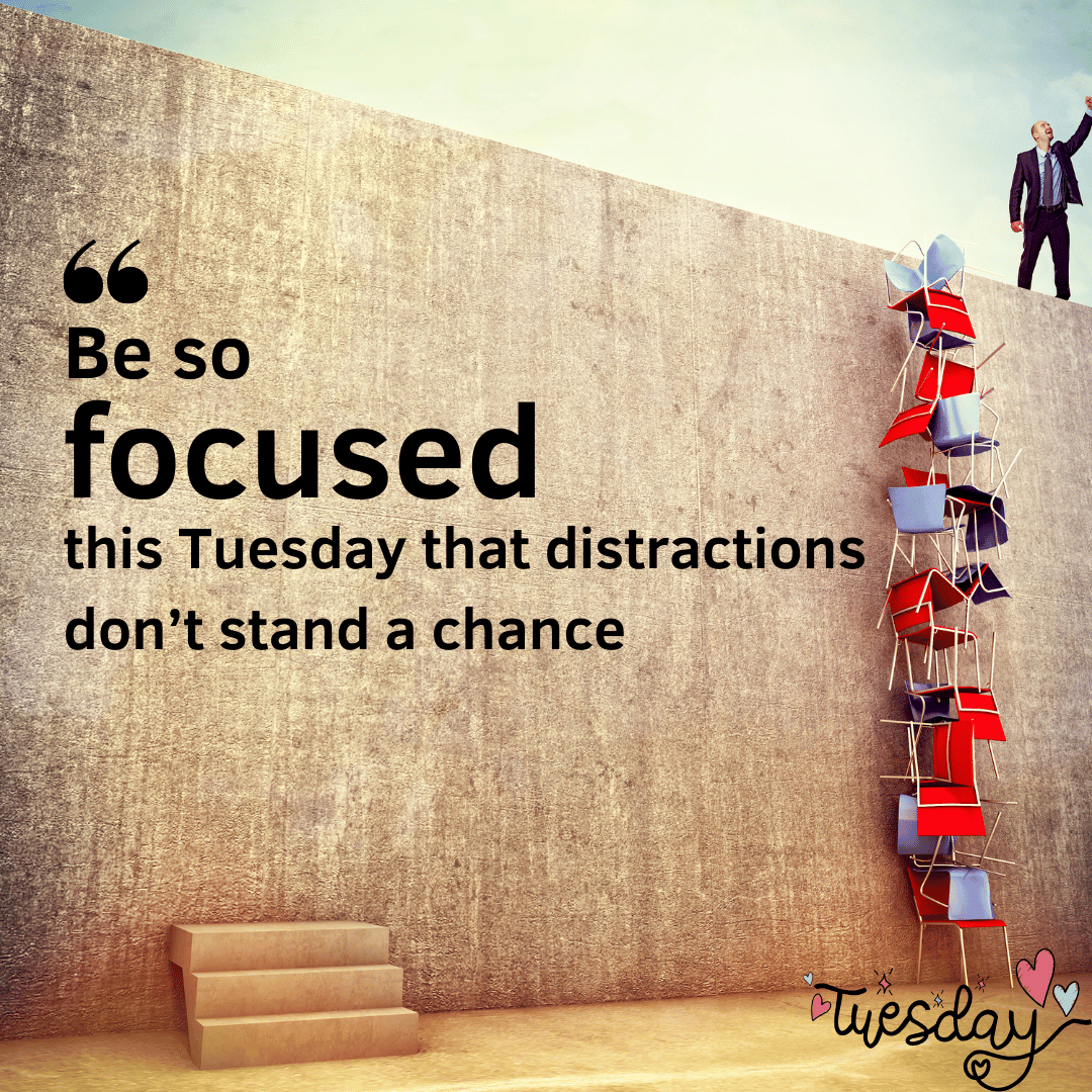 “Be so focused this Tuesday that distractions don’t stand a chance” Keep your eyes on your goals and avoid letting minor distractions slow you down.