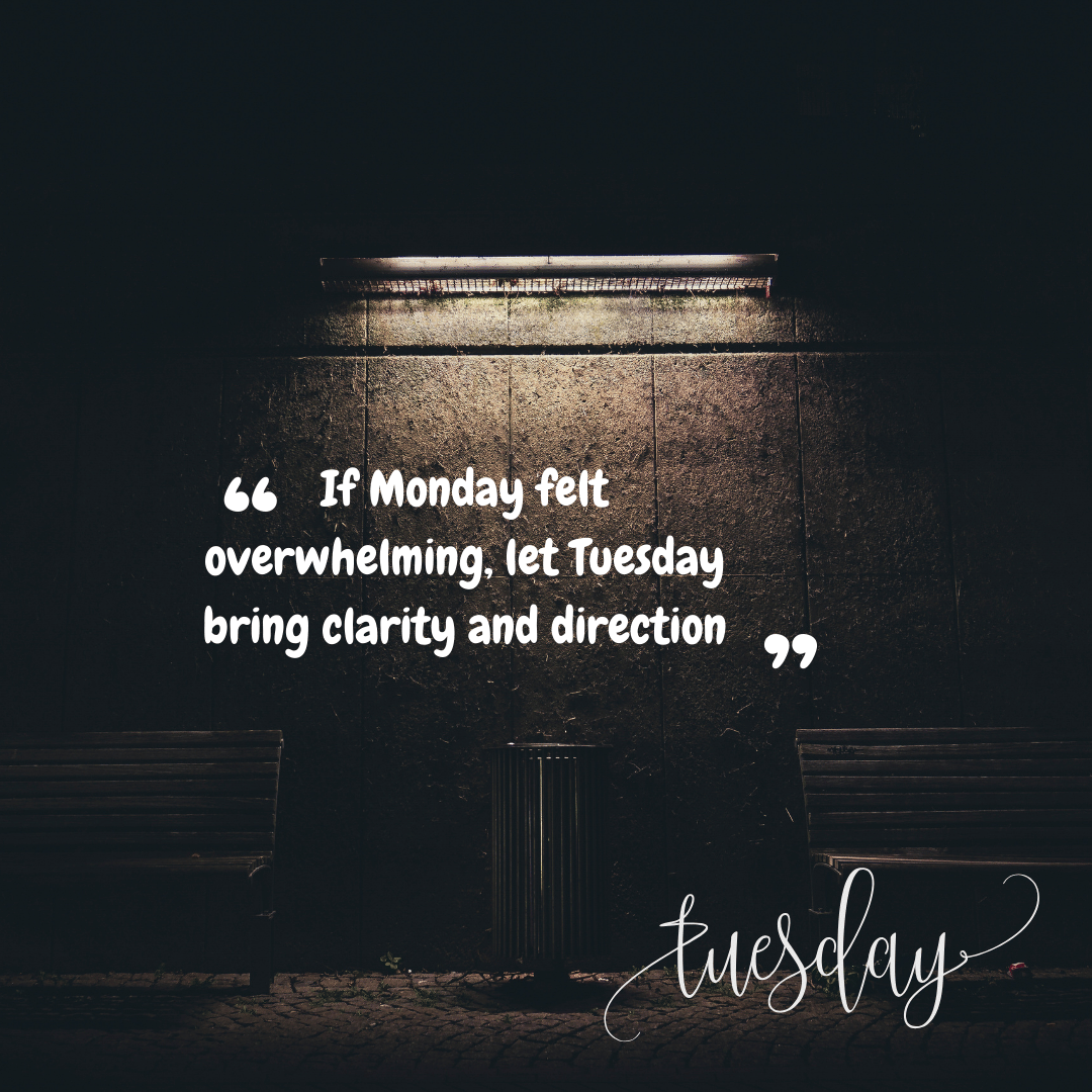 “If Monday felt overwhelming let Tuesday bring clarity and direction” If you feel sluggish after Monday, use Tuesday to regain energy and focus.